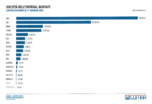 l comparto energetico italiano apre il 2026 consolidando il proprio ruolo di pilastro dell’economia nazionale, pur muovendosi a una velocità leggermente inferiore rispetto alla corsa complessiva di Piazza Affari. Al 1° gennaio 2026, le 18 principali società del settore quotate su Borsa Italiana hanno raggiunto una capitalizzazione complessiva di 220,2 miliardi di euro. Il dato, che emerge dall’ultima indagine di CoMar realizzata nell’ambito dell’Osservatorio Finanziario presieduto da Massimo Rossi, certifica un incremento di oltre 44,4 miliardi di euro negli ultimi dodici mesi. Si tratta di una crescita robusta, pari al 25,3% rispetto ai 175,8 miliardi registrati all’inizio del 2025. Nonostante la performance positiva, il settore ha però “rincorso” l’intero listino milanese, che nello stesso periodo ha visto il proprio valore totale lievitare del 29,7%, passando da 810,6 a 1.051 miliardi di euro.