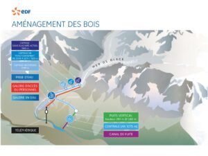A Chamonix, nel cuore del massiccio del Monte Bianco, esiste una centrale idroelettrica che sfida l’immaginazione. Cinquanta metri sotto la superficie della Mer de Glace, uno dei ghiacciai più famosi al mondo, si nasconde un’opera di ingegneria eccezionale: la presa d’acqua subglaciale dell’impianto di Bois. In una maestosa caverna artificiale scavata a 1.560 metri di altitudine, EDF capta l’acqua dello scioglimento naturale e stagionale del ghiacciaio per trasformarla in energia rinnovabile, un esempio straordinario di adattamento e innovazione in un contesto ambientale unico e fragile.